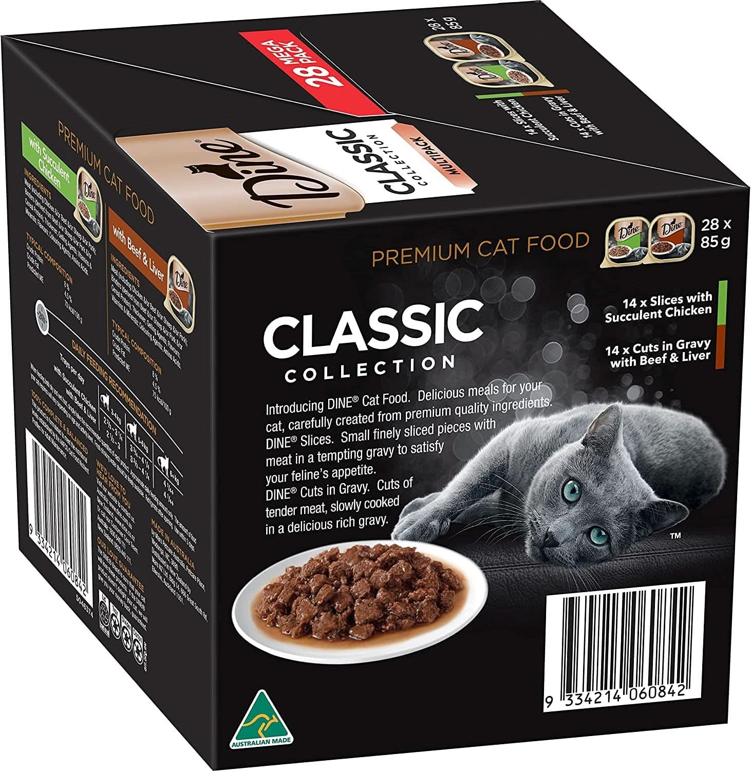 Dine Classic Collection Cuts in Gravy with Beef and Liver Wet Cat Food, 85g x Pack of 28